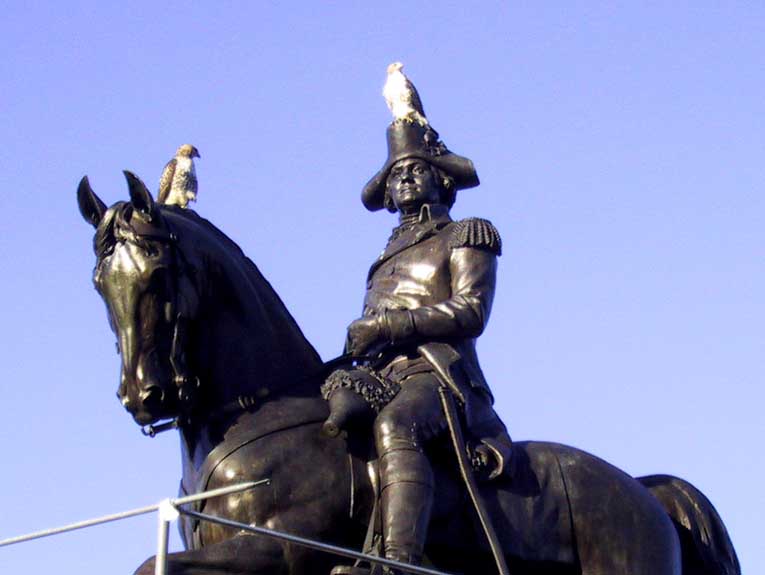 falcons keep the pigeons from making a mess everywhere. Funny, you