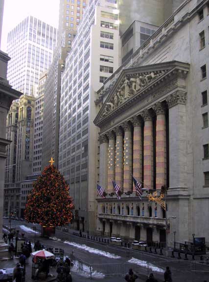 The New York Stock Exchange building and Christmas tree December 7, 2002