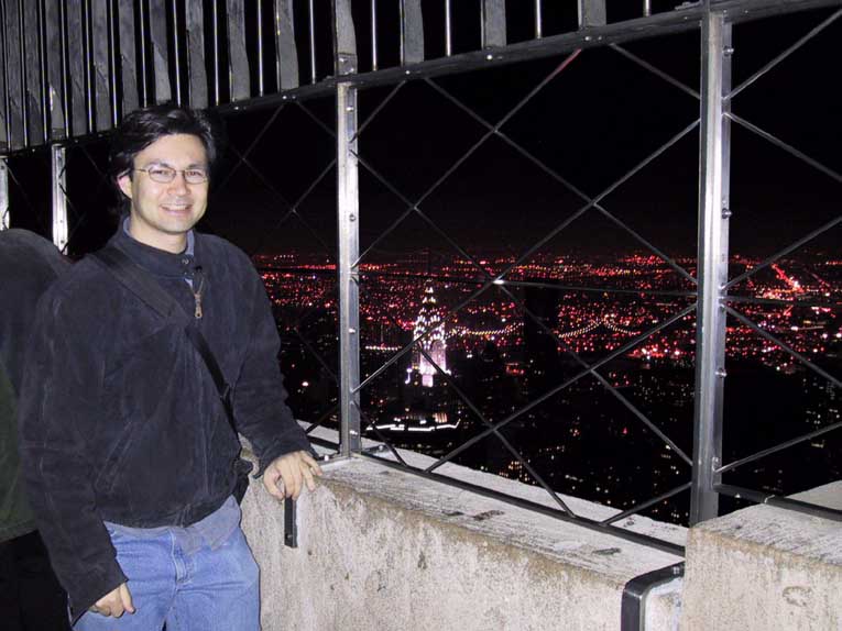 Me and the Chrysler Building, viewed from the very cold and windy top of the Empire State Building.